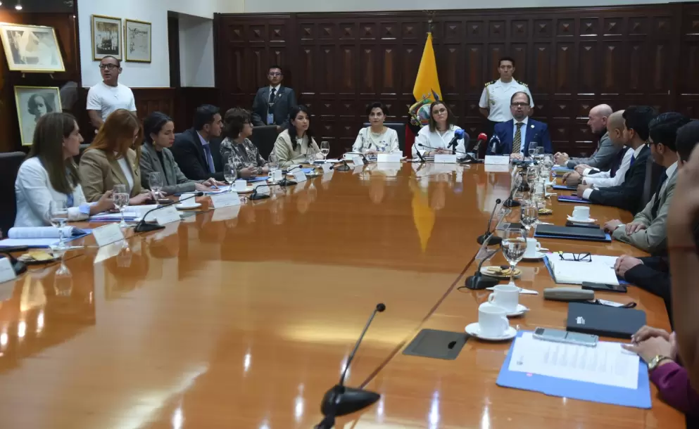 María José Pinto, vicepresidenta de la República, y John Reimberg, ministro del Interior, encabezaron la reunión que se realizó en la sede de la Vicepresidencia.