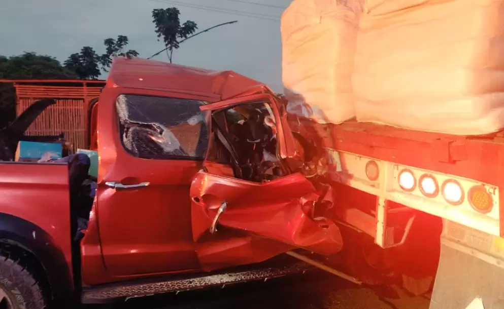 El choque se dio pasando el peaje de la zona. En las fotos que publicó el Ecu 911, se aprecia que la parte frontal de la camioneta quedó incrustada en el posterior del tráiler.