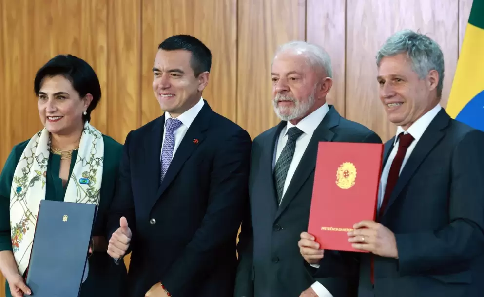 En el marco de su gira internacional, el presidente Daniel Noboa se reunió con su homólogo brasileño, Luiz Inácio Lula da Silva, en Brasilia. Durante el encuentro, se firmaron acuerdos de cooperación en tres sectores estratégicos: lucha contra el hambre y la pobreza, inteligencia artificial y políticas de agricultura familiar.