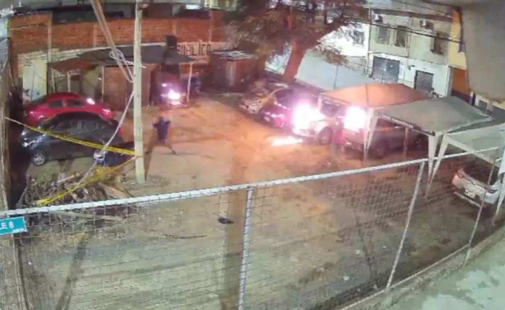 Uno de los videos, de una cámara de seguridad, muestra a dos sujetos que prenden fuego en los vehículos. Ellos permanecer en el lugar un par de minutos y luego se van.