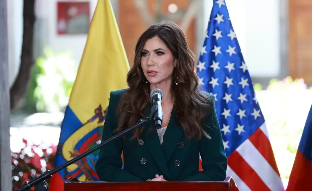 Noem visitó el país el pasado 5 y 6 de noviembre de 2025, cuando se reunió con el presidente Daniel Noboa para tratar asuntos de seguridad.