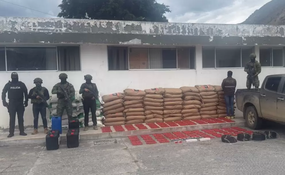 1.038 tacos de dinamita, 20 cajas de fulminantes, 4.000 metros de mecha lenta y decenas de sacos con químicos fueron decomisados por las Fuerzas Armadas durante un operativo en la zona fronteriza de El Chical, Carchi. Según las primeras indagaciones, el cargamento estaría vinculado a actividades de minería ilegal.
