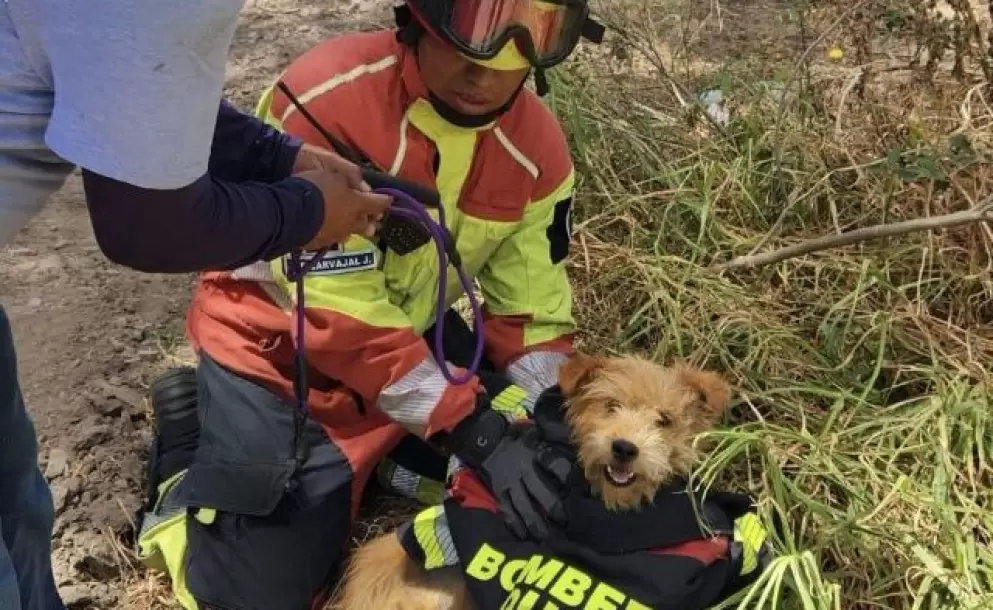El Cuerpo de Bomberos rescató, en menos de 24 horas, a dos animales de compañía en situaciones de riesgo. El primero, un perro que cayó en una zanja de casi cuatro metros de profundidad; el segundo, un gato que trepó hasta lo alto de un árbol y no pudo bajar por sí solo.