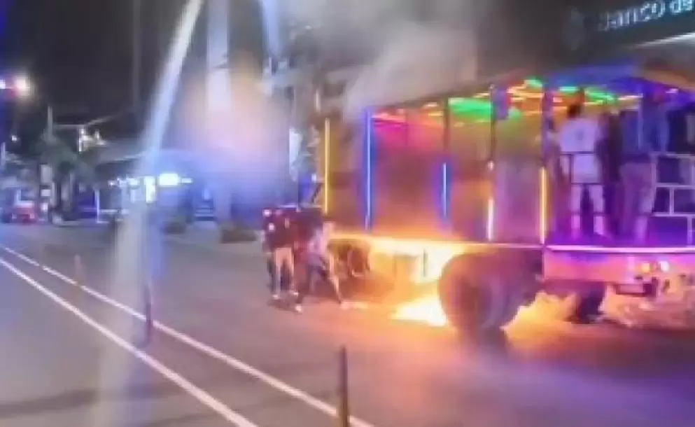 En los videos difundidos en redes sociales se observa cómo un joven intenta sofocar las llamas utilizando una chompa, mientras los ocupantes eran evacuados por miembros de la Policía Nacional y los agentes de tránsito.