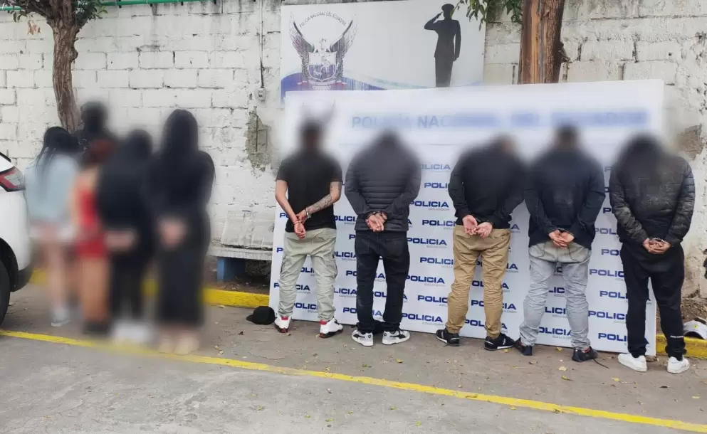 Una rápida acción en la avenida Ajaví, en Quito, permitió la detención de nueve sujetos que estarían vinculados al grupo delictivo Los Lobos. Los sospechosos habrían amenazado con armas al dueño de un hostal.