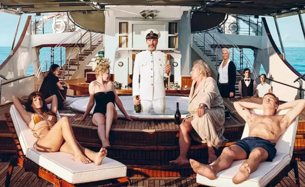 Mediante el humor negro la cinta refleja la interacción entre las personas ricas con las menos favorecidas, siendo reflejadas por los trabajdores de la embarcación. Allí, la tripulación cumple con todos los deseos de los ricos y famosos, hasta que una tormenta golpea a la embarcación y todos los eventos toman un giro inesperado.