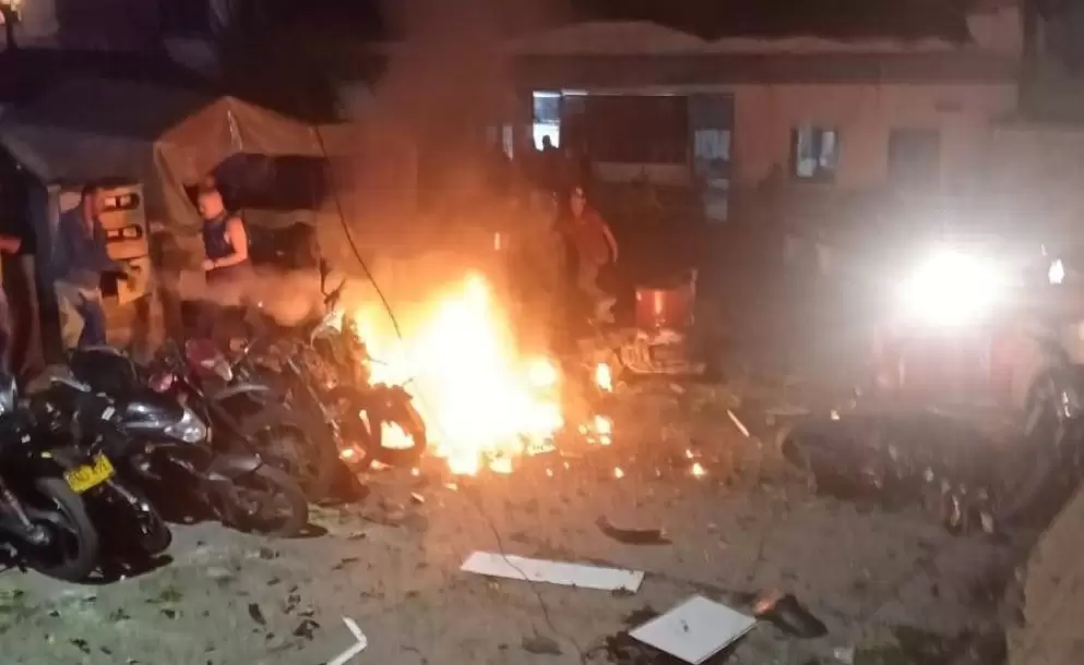 Imágenes suministradas a SEMANA dejan ver los daños estructurales que sufrieron varios establecimientos comerciales, las instalaciones de la estación de Policía, así como algunas motos que terminaron incineradas.