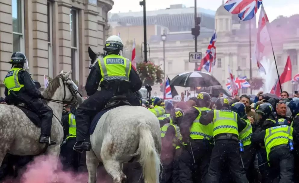 Más de 100.000 personas se reunieron este sábado en Londres para participar en una masiva marcha convocada por el líder de extrema derecha Tommy Robinson, bajo el lema "Unir el Reino", con el objetivo de protestar contra la inmigración irregular y las políticas gubernamentales hacia los solicitantes de asilo. Los manifestantes recorrieron el sur de la ciudad hasta la zona gubernamental, portando banderas británicas y pancartas con lemas como "detener las pateras" y "devolverlos a casa".
