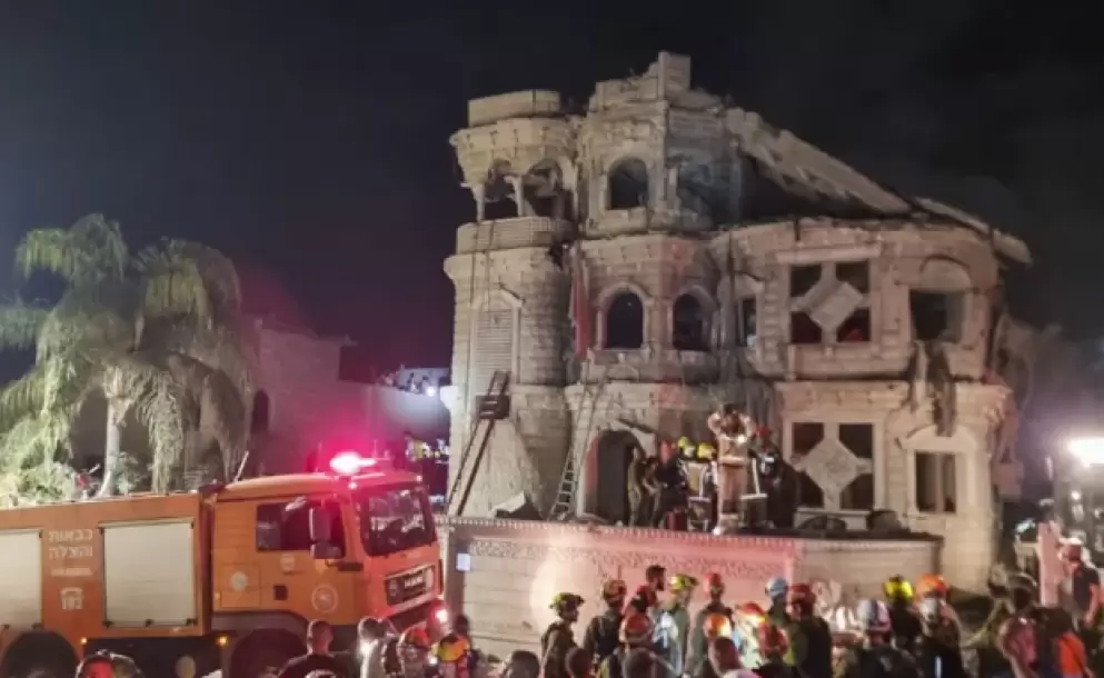 El sargento de los bomberos Yair Elkayim, comandante del Distrito Norte, añade que «se trata de un lugar con gran destrucción en un edificio de cuatro plantas que resultó dañado y el piso superior se derrumbó parcialmente».