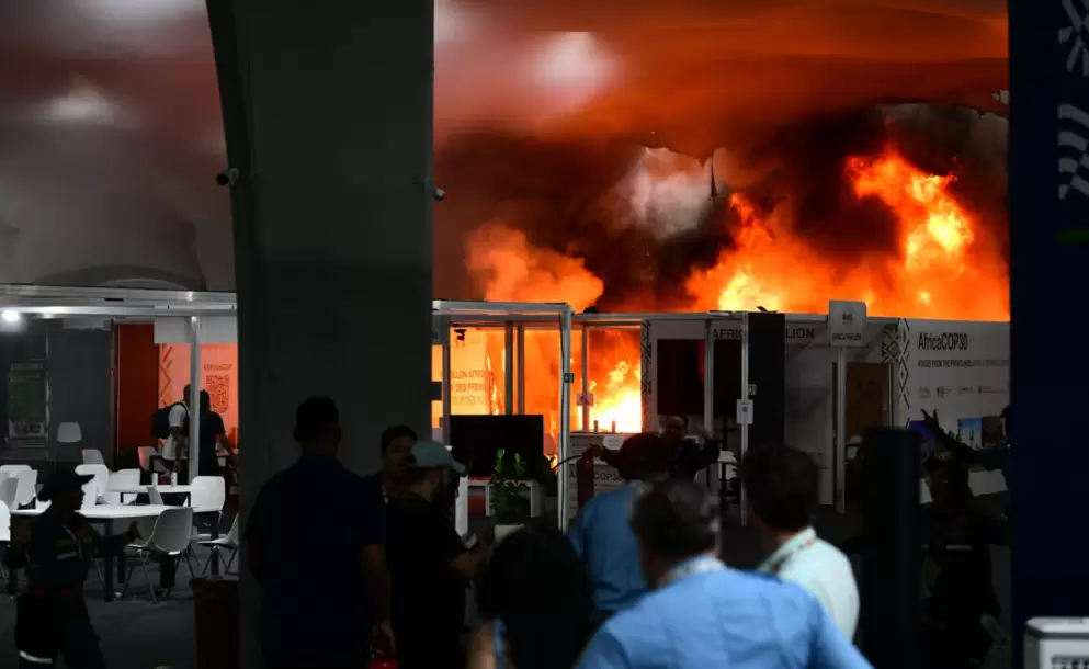 El incendio de este jueves se desató mientras ministros de todo el mundo negociaban sobre temas como la transición energética y el financiamiento climático, cuando falta un día para que termine la COP.
