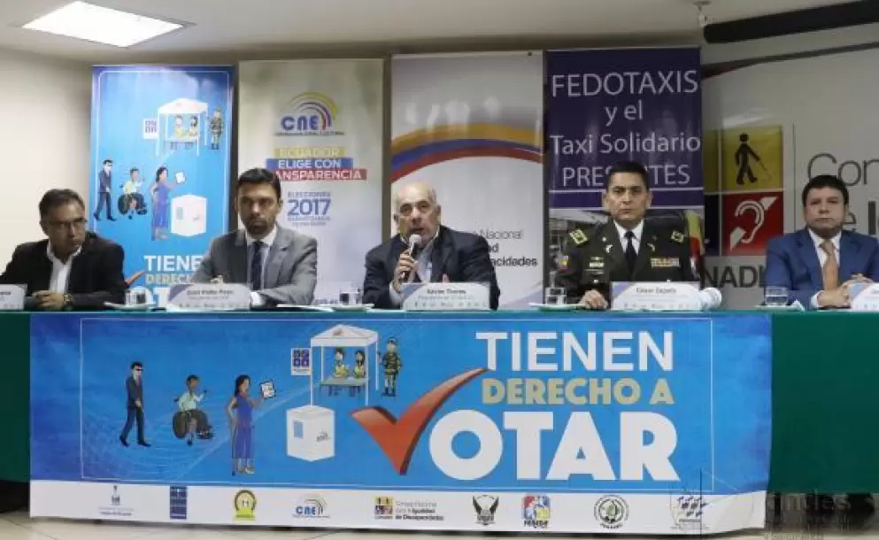 Xavier Torres, presidente del Conadis, informó que para estos comicios están empadronadas 345.467 personas con discapacidad y que existen cuatro modalidades de voto que promueven la participación democrática de estos ciudadanos: en casa, preferente, asistido, además de la mesa de atención preferente.