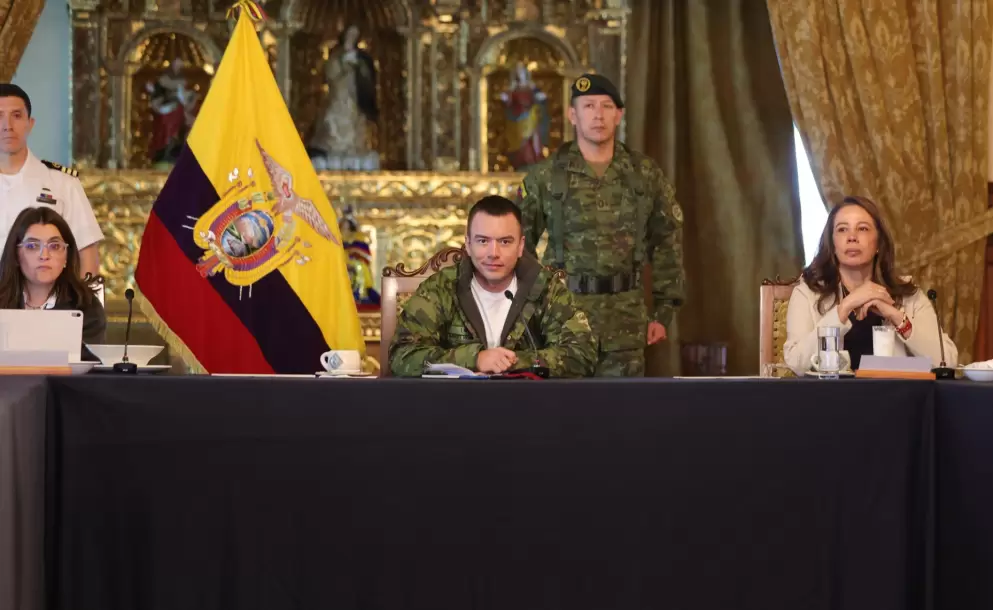 Noboa indicó que la respuesta del Estado es integral y articula el trabajo de la Unidad de Análisis Financiero y Económico (UAFE), los organismos de Inteligencia, la Policía Nacional y las Fuerzas Armadas.