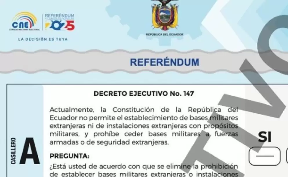 El próximo 16 de noviembre, los ecuatorianos acudirán a las urnas para responder cuatro preguntas, tres de referéndum y una de consulta popular, marcando su elección entre el "Sí" o el "No" en una papeleta única y bicolor.