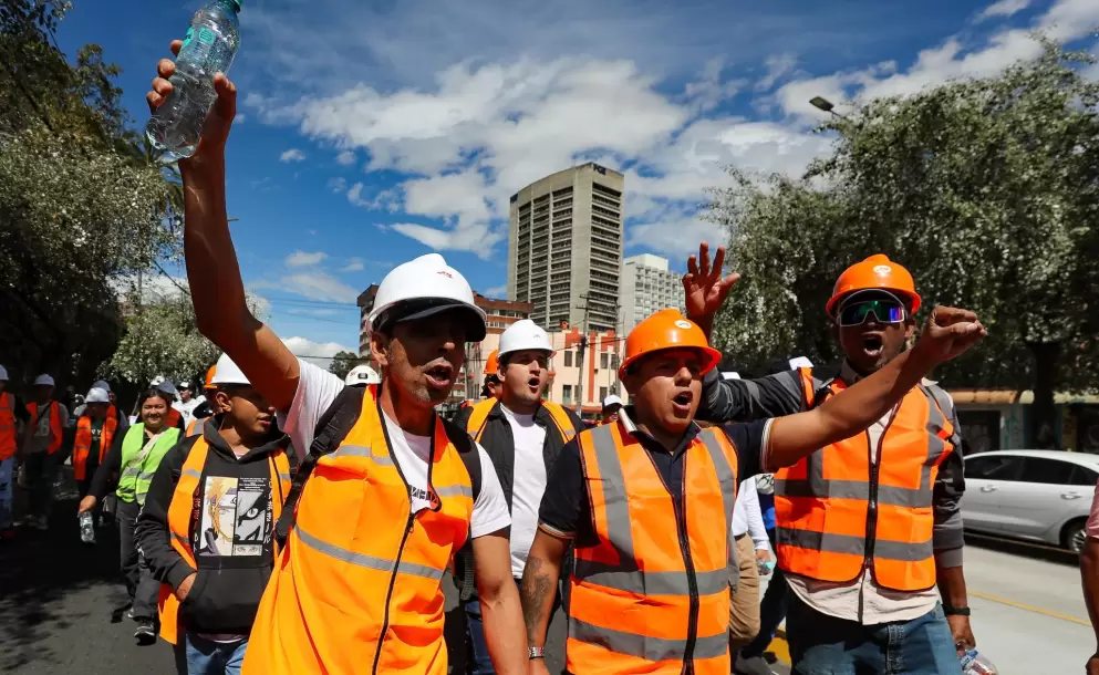 Con lemas como "No a la tasa minera" o "La tasa minera es desempleo", los manifestantes recorrieron varias calles de la capital para hacer sentir su rechazo a la medida, con la que el Gobierno del presidente Daniel Noboa pretende recaudar 229 millones de dólares anuales para fortalecer el control y la vigilancia para combatir la minería ilegal.