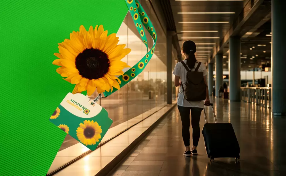 Los pasajeros que tienen una discapacidad no visible pueden solicitar un collarín de girasoles de manera gratuita, sin la necesidad de un certificado médico. Esto permite comunicar, de manera discreta, al personal del aeropuerto que ese pasajero necesita un trato que se adapte a su condición y requerimientos, más tiempo y explicaciones claras.